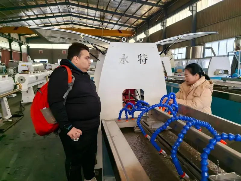 Ние също така демонстрирахме сценариите за приложение на гумени тръби за напояване, произведени от нашите работещи машини на място. Клиентът сравни мостри от нашите продукти с тези, налични на индийския пазар, и идентифицира няколко ключови предимства на нашите продукти, включително отлична гъвкавост, превъзходна издръжливост, равномерно разпределение на водата и ефективност при пестене на вода.