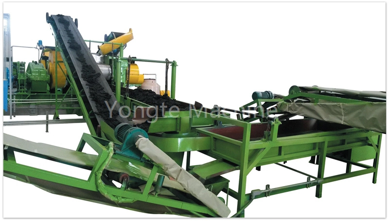 Тази машина се използва за превръщане на отпадъчни гумени гуми във фин гумен прах. Процесът включва изтегляне на стоманени телове, рязане на гумите, раздробяване, раздробяване, смилане на праха и филтриране. Използвайки усъвършенствана технология за рециклиране и разделяне, машината ефективно отделя стоманена тел, каучуков прах и влакна от отпадъците от гумени гуми. производственият капацитет може да бъде 500-600 кг/час. Обработеният каучуков прах може да се използва директно за направата на гумени нано тръби.